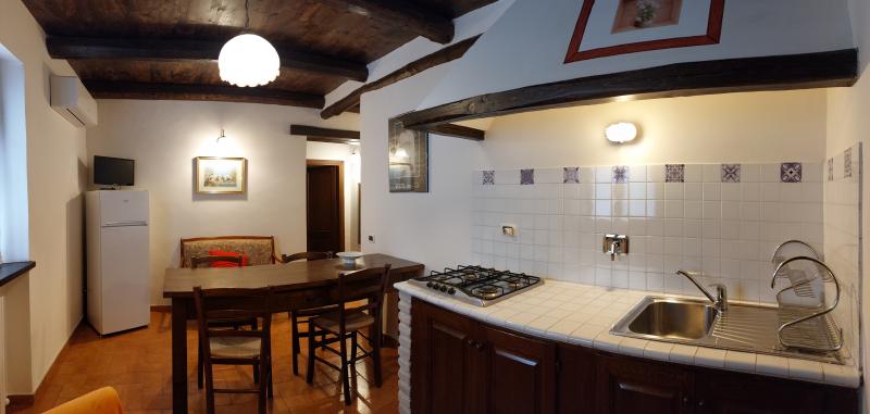 4 posti letto: n. 2 camere matrimoniali, bagno, soggiorno con angolo cottura. Giardino